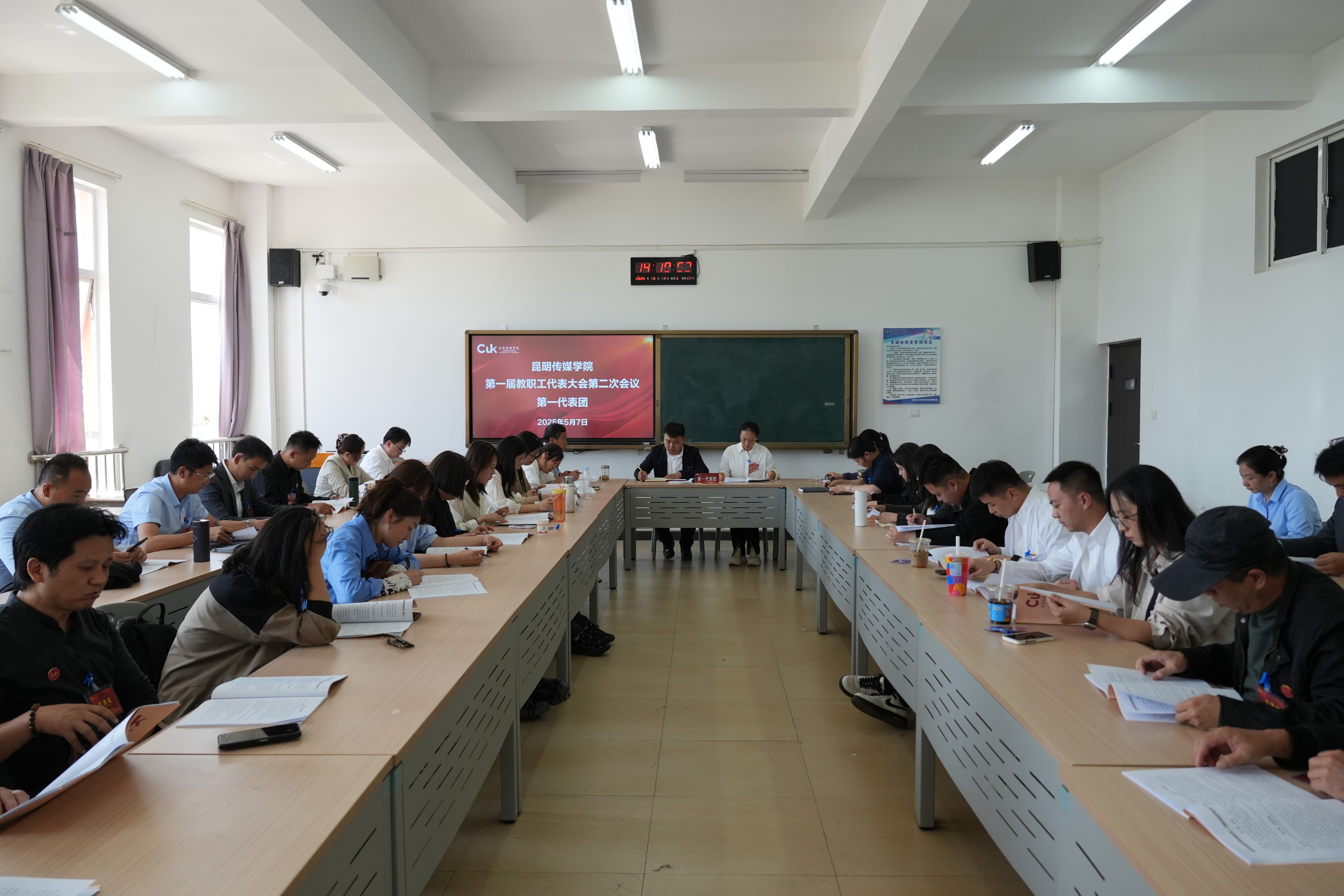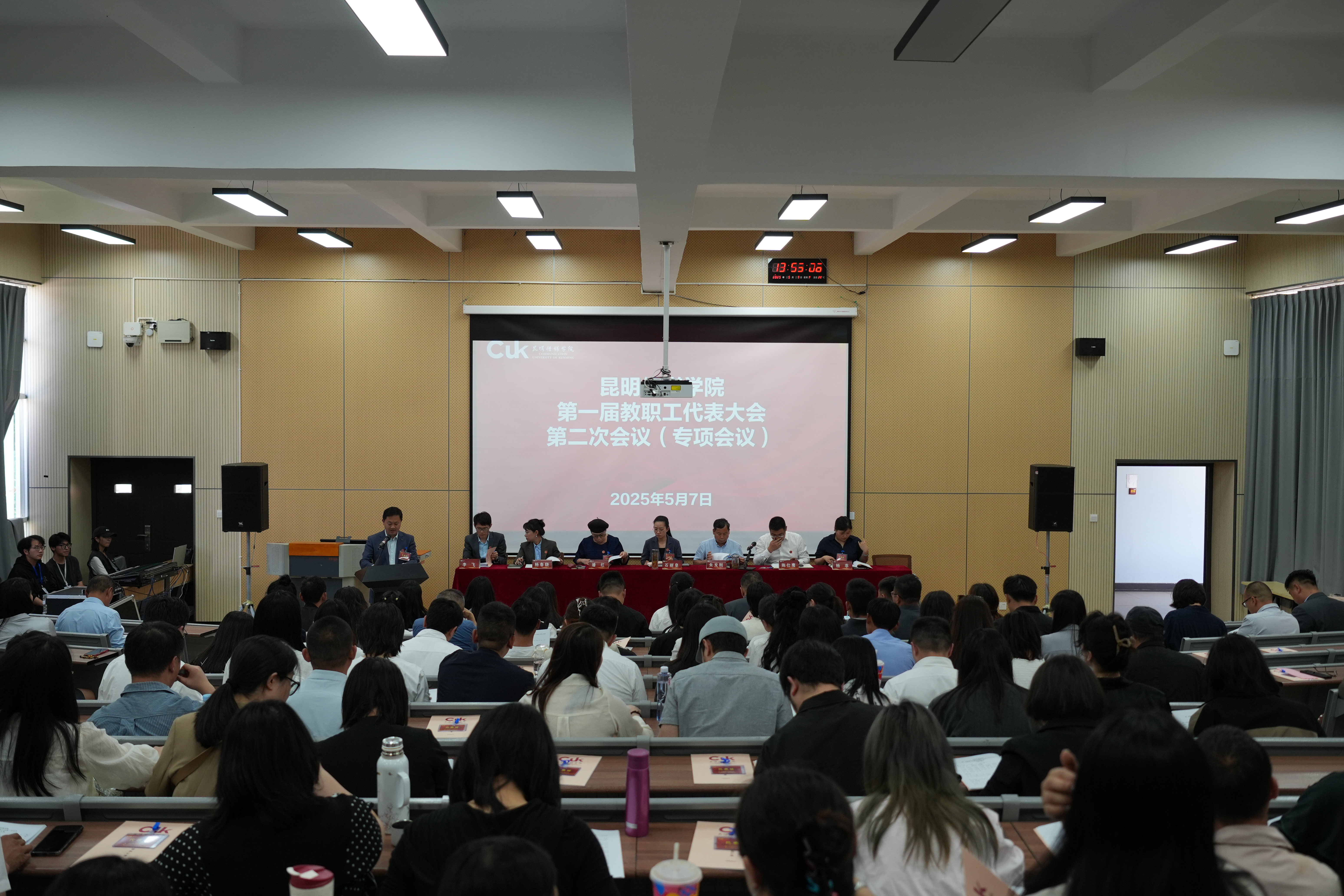 5月7日,昆明传媒学院召开第一届教职工代表大会第二次会议。会议正式代表90名、列席代表28名参加会议,大会由党委副书记、副校长李劲主持。