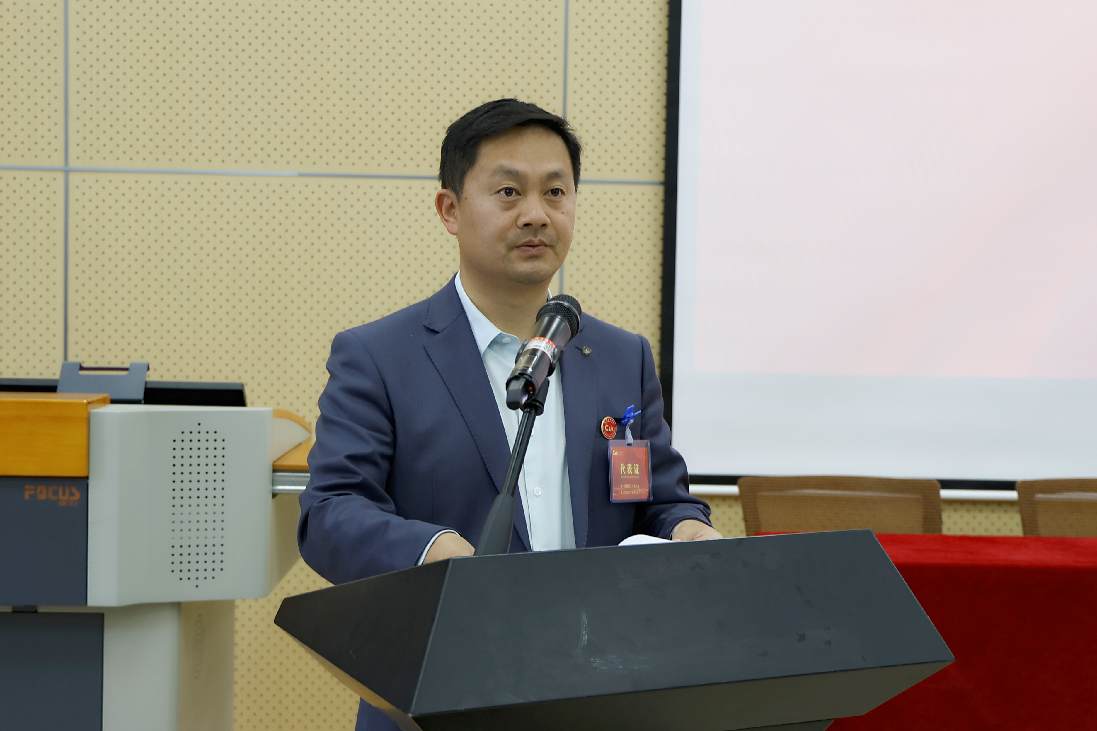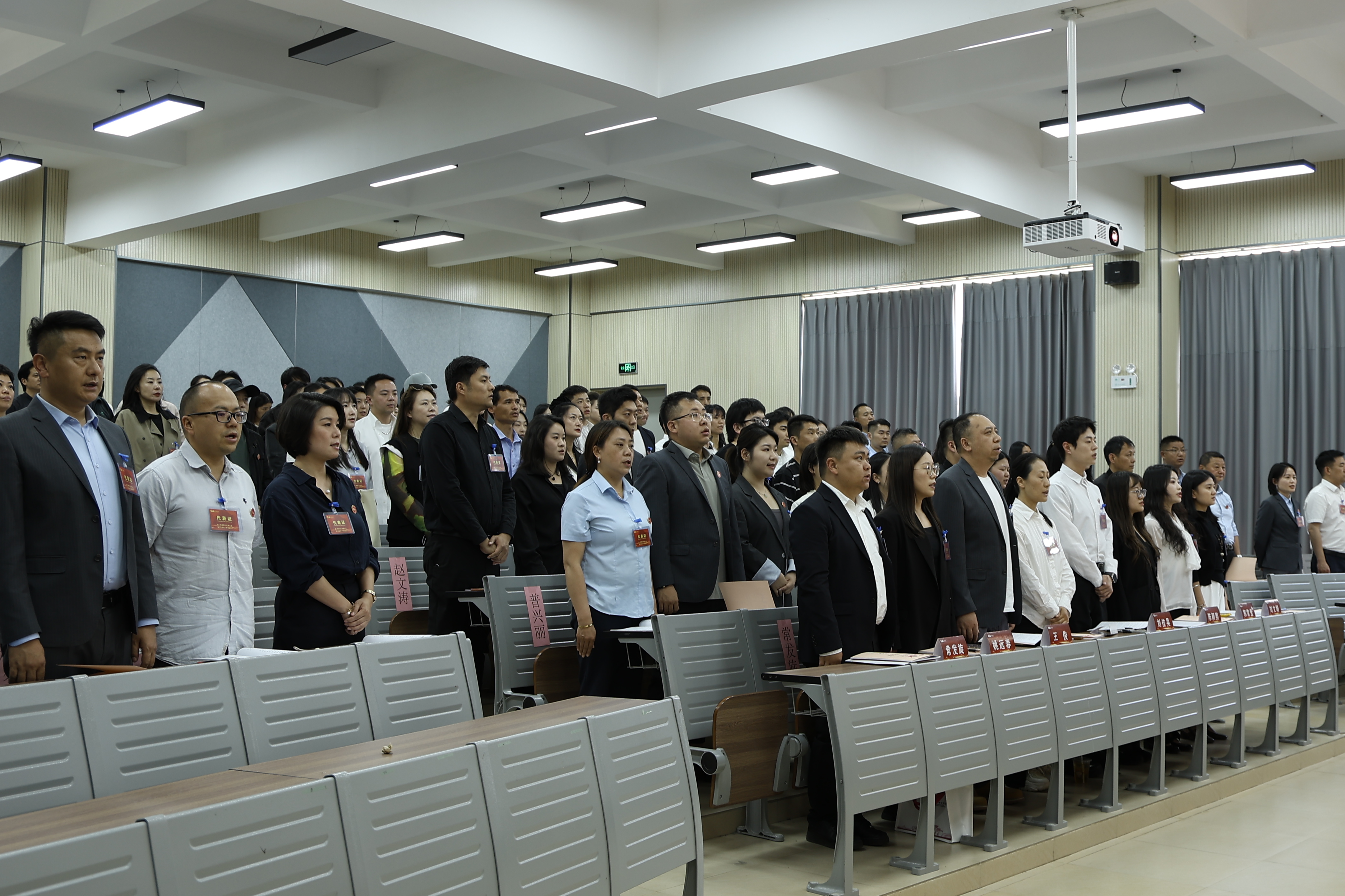 李劲副书记、副校长宣布昆明传媒学院第一届教职工代表大会第二次会议开幕。全体参会人员起立并奏唱国歌,大会正式拉开序幕。